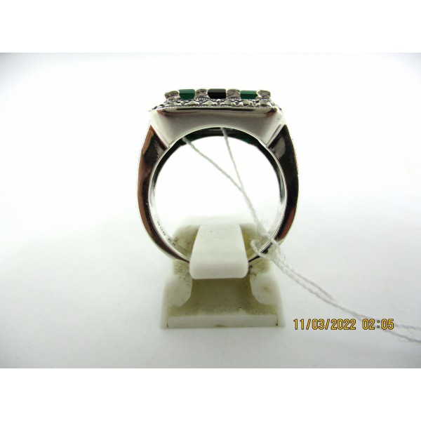 Bague Vintage Trilogie en Argent avec Agate et Onyx