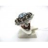 Bague de style rétro, en argent 925, pierres topaze bleue et grenats, diamètres 2,5 cm sur 2 cm, mise à la taille gratuite.