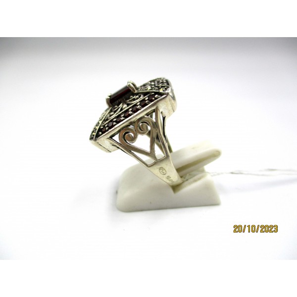Bague Art Déco en Argent 925 et Pierres de Grenat