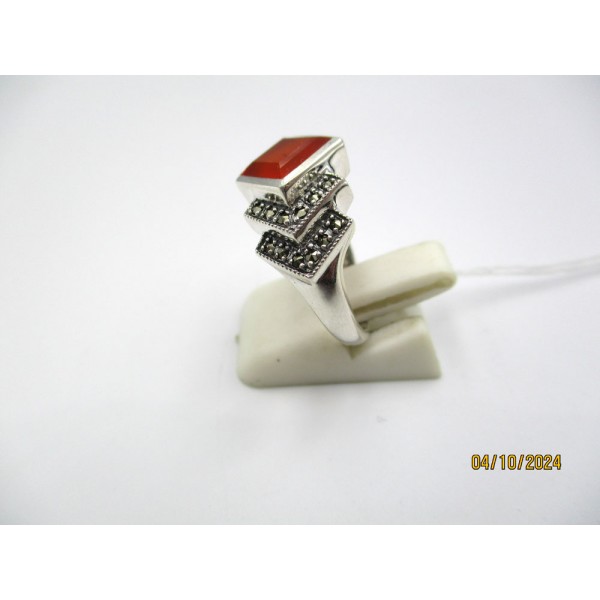 Bague de style art déco pour femme, en argent 915, pierres de cornaline et marcassites. Diamètre 1,2 cm, mise à la taille gratuite et livraison gratuite en France Métropolitaine.