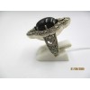Bague rétro en argent et onyx noir