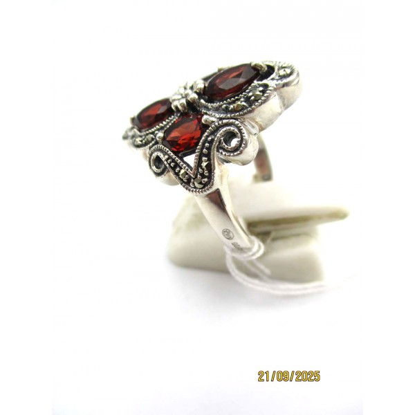 Bague de style rétro pour femmes, en argent 925, avec pierres de grenat et marcassites, diamètre 2?5 cm, mise à la taille gratuite. Livraison gratuite en France métropolitaine