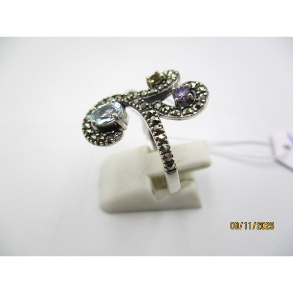 Bague Art Déco en Argent Pierres Améthyste, Topaze et Citrine