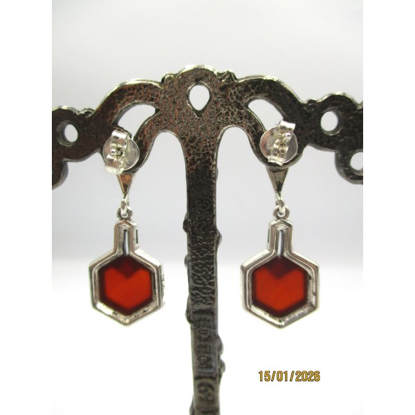 Boucles d'Oreilles Art déco en Argent et Cornaline