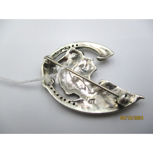 broche figurine de style rétro, en argent 925, diamètres 4 cm sur 3 cm.