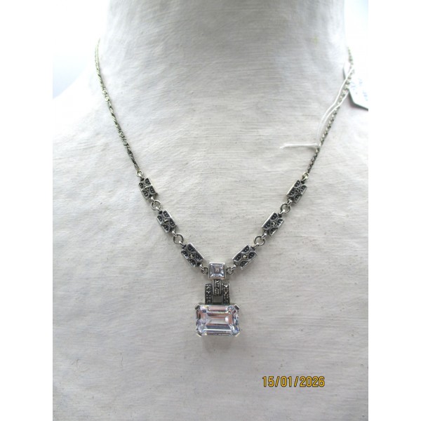 Collier de style art déco pour femmes, monté sur argent 925, pierre zirconium, longueur 22cm . Frais de port offert en France métropolitaine